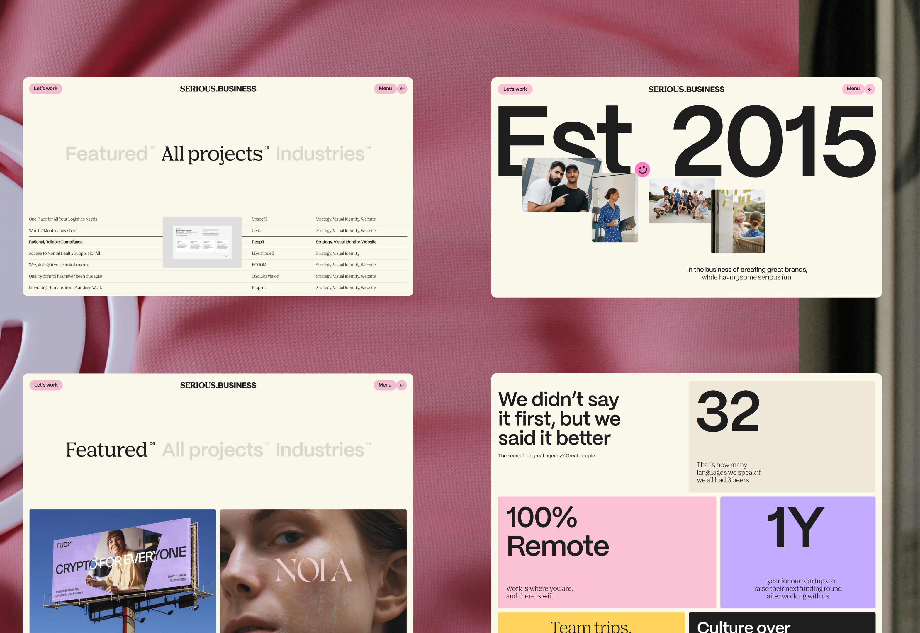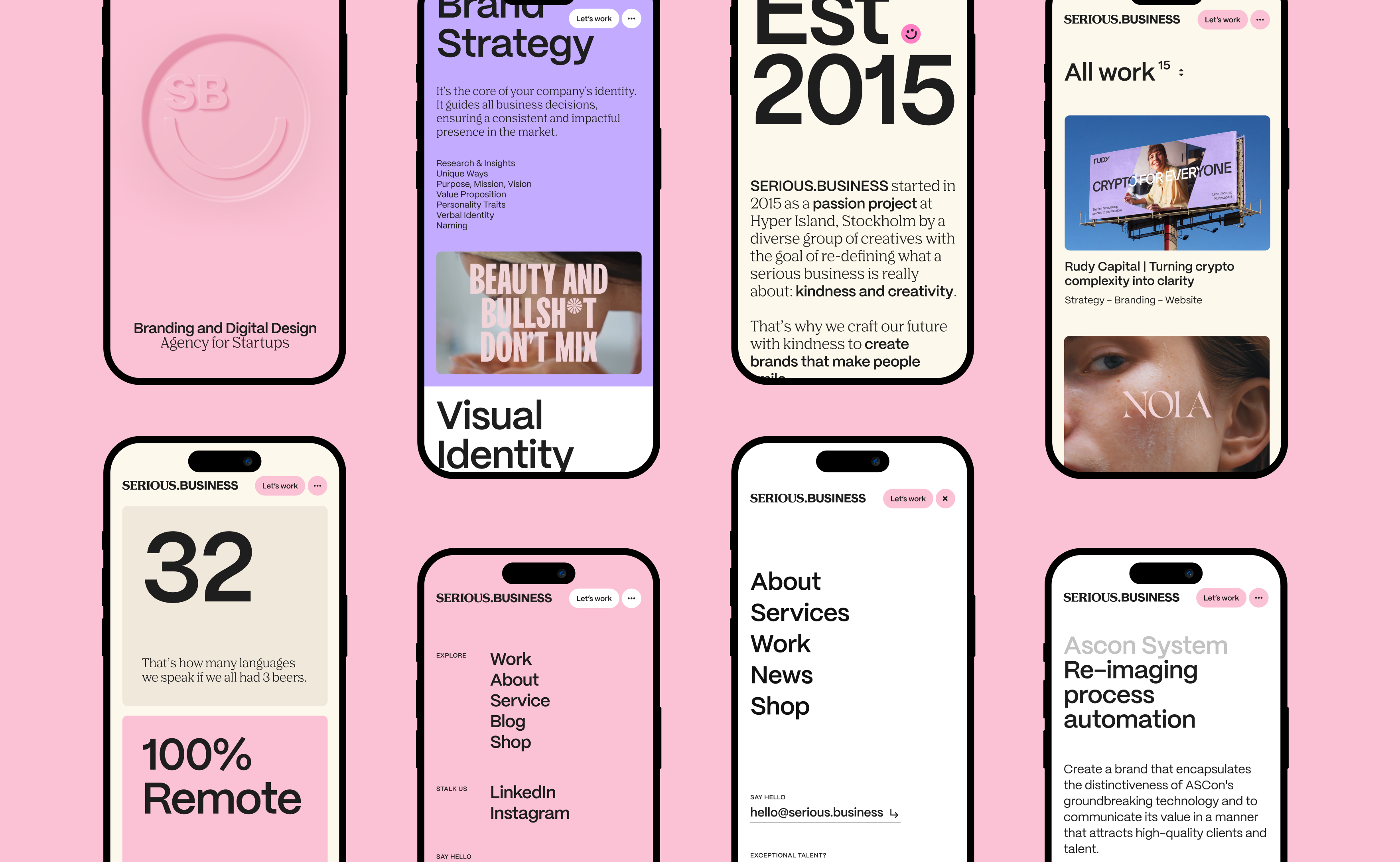 SERIOUS.BUSINESS is a premium branding agency for startups. We excel at creating brands that make people smile by connecting creativity with strategy.