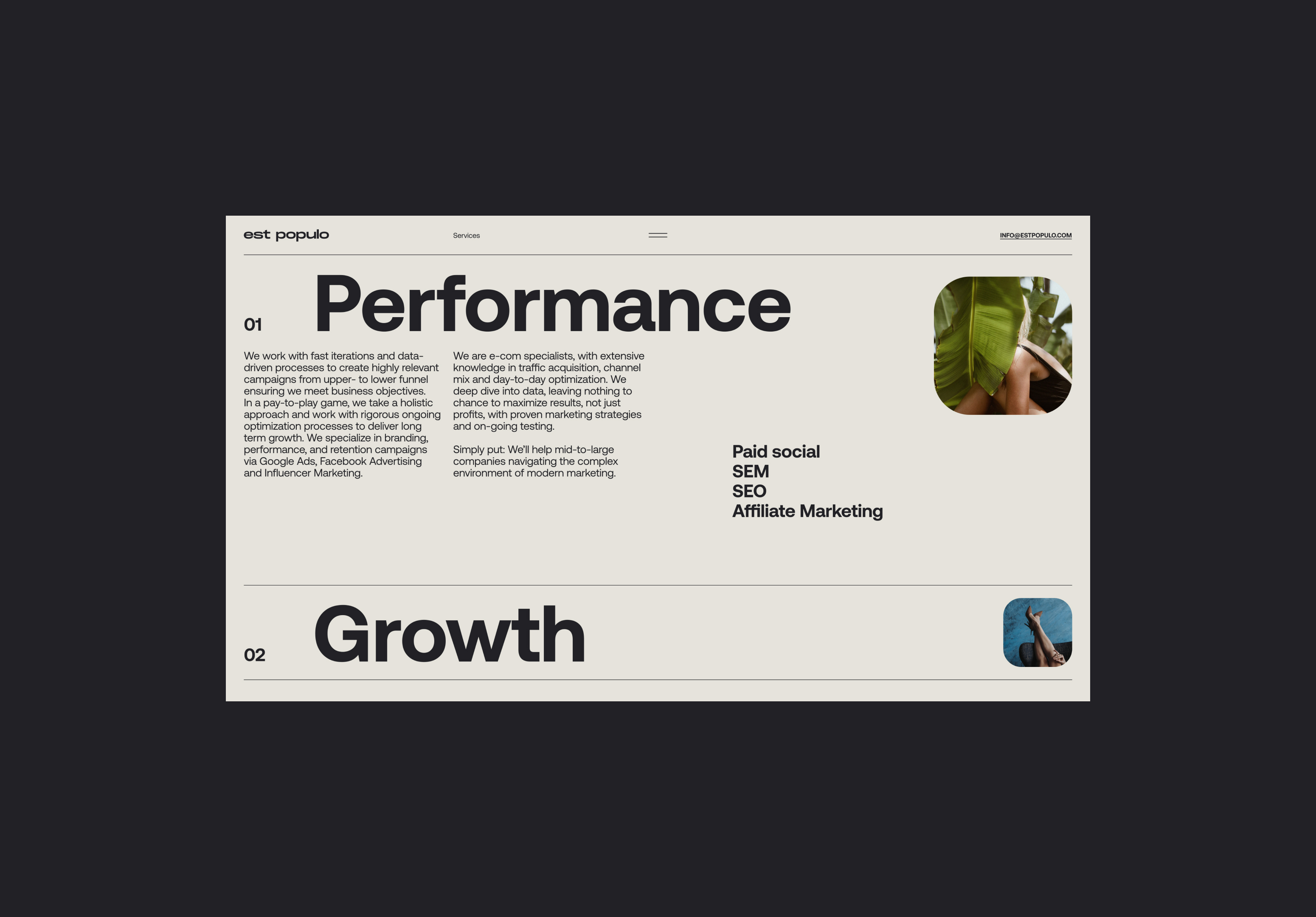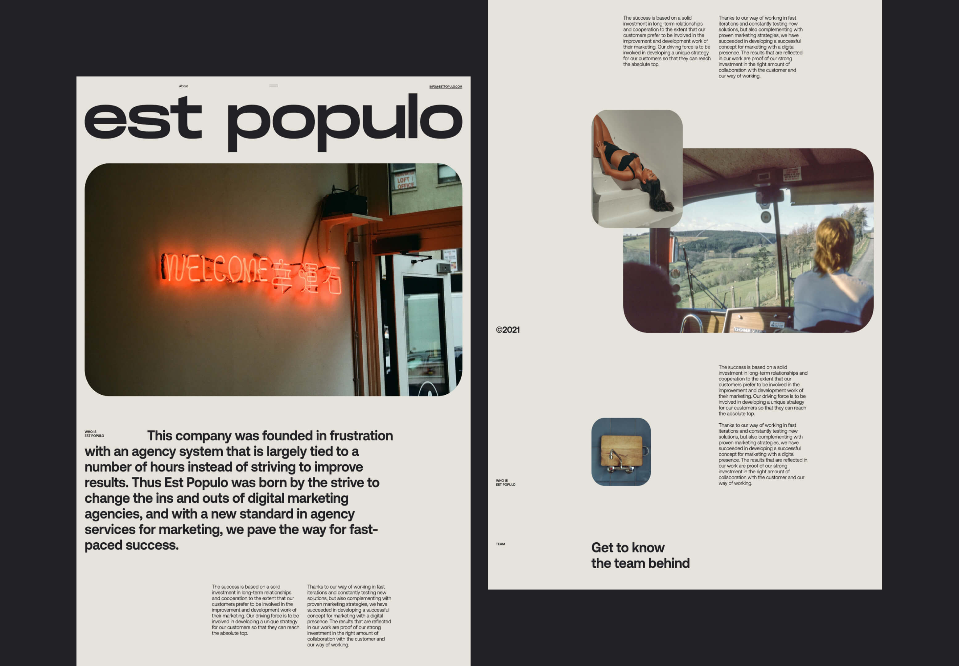 Est Populo is a marketing agency based in Stockholm, Sweden. They were born by the strive to change the ins and outs of digital marketing agencies, and with a new standard in agency services for marketing, we pave the way for fast-paced success.